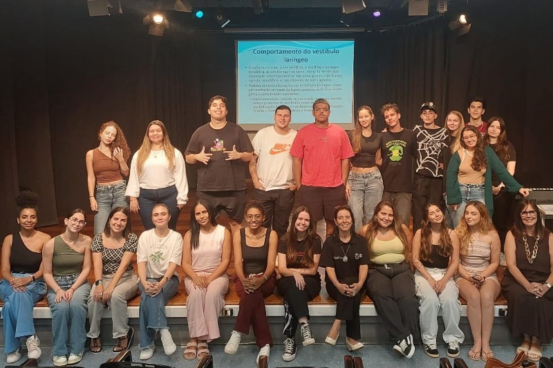 Para a aluna do oitavo semestre do Curso, Giovanna Santos Batista, a ação mostrou que a voz é uma “ferramenta poderosa de saúde, expressão e conexão entre as pessoas. A oficina, que é bastante imersiva, só reafirmou que a nossa voz traz benefícios reais para o corpo, para a mente e para o convívio social. Este tipo de trabalho também é um recurso valioso para estudantes em período de realização de seus TCCs, pois oferece uma experiência prática e um material concreto sobre os impactos da voz no bem-estar humano”.