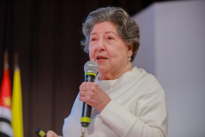 Logo depois, a Dra. Diana Tosello Laloni, professora do curso entre 1969 e 2024, e uma das homenageadas, realizou uma apresentação sobre a história da Faculdade de Psicologia da PUC-Campinas, da qual ela fez parte também como aluna e diretora.