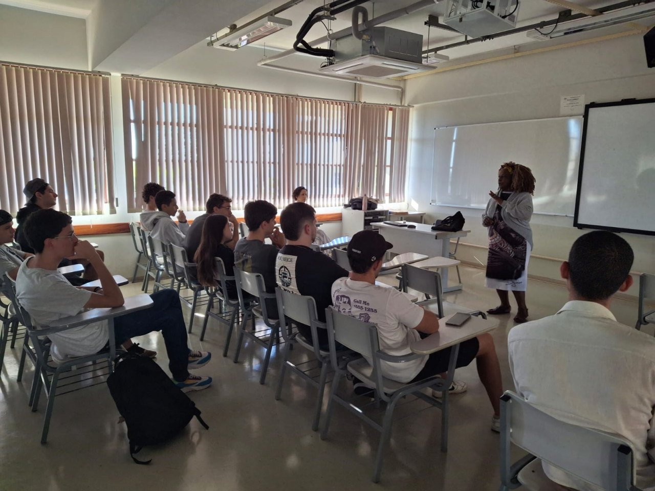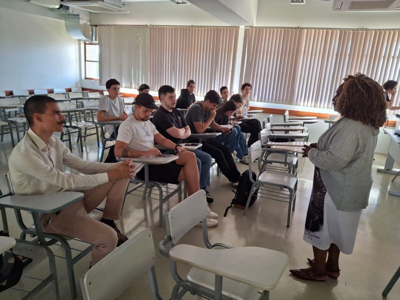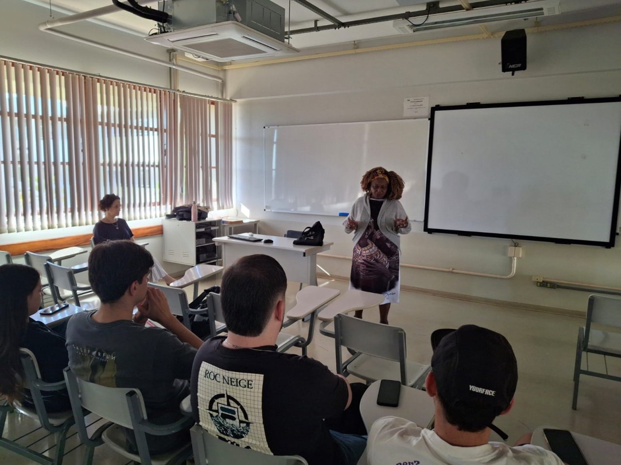 Palestra ministrada pelo Centro de Estudos Africanos e Afro-Brasileiros Dra. Nicéa Quintino Amauro- CEAAB, para os estudantes e a docente Karla Caldas Ehrenberg, do Curso de Jornalismo