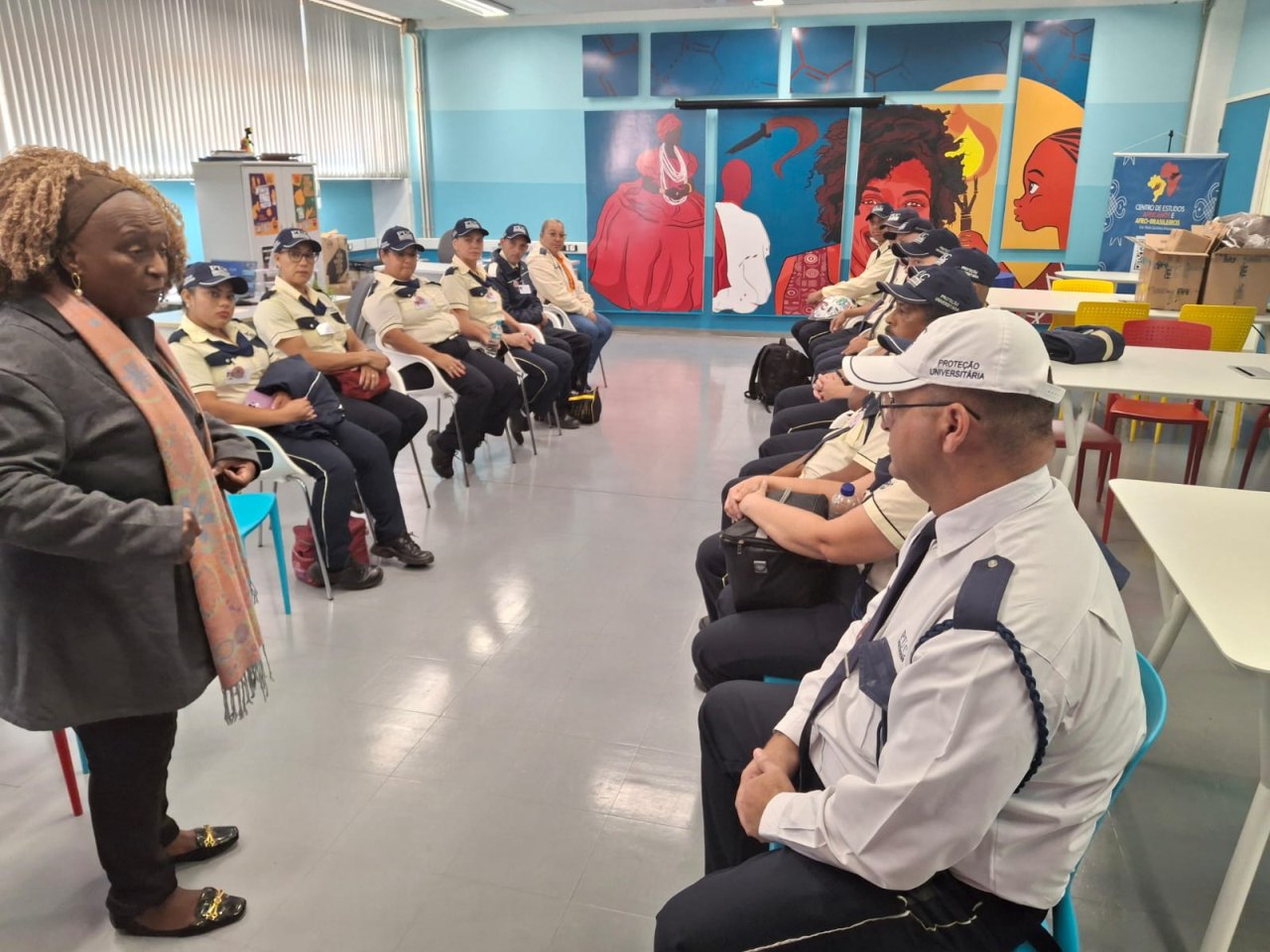 Registro do acolhimento aos seguranças da PUC-Campinas, pelo entro de Estudos Africanos e Afro-Brasileiros Dra. Nicéa Quintino Amauro
