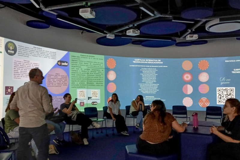 O projeto já está em andamento, com os estudantes organizados em grupos temáticos e subgrupos por países, desenvolvendo pesquisas e estruturando os conteúdos. A construção da identidade visual também faz parte do processo, contribuindo para orientar o trabalho desde o início. “A ideia é começar um projeto sempre com o final em mente. Eu sei como isso vai ser visualizado, que público vai ler. Isso dá um direcionamento maior”, completa o docente.