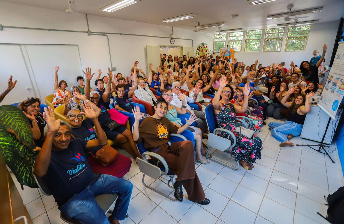 O evento reuniu cerca de 80 idosos, além de estudantes e da equipe técnica da Instituição, promovendo uma importante e enriquecedora integração intergeracional. Na oportunidade, também foi lançada a 4ª edição do informativo “Vitalità em Ação”, publicação que se consolida cada vez mais como um espaço de comunicação, voz e expressão para os participantes.