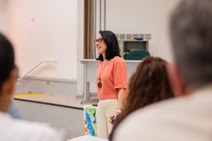 “A escolha da professora Ana Paula se deu em razão de sua reconhecida experiência acadêmica e de pesquisa na área da educação linguística e da educação bilíngue nas infâncias. A intenção foi trazer para o centro do debate um tema ainda pouco explorado nos cursos de Letras, sobretudo na licenciatura, tradicionalmente voltada para os contextos de ensino dos anos finais dos ensinos fundamental e médio. Ao abordar a educação linguística na infância, a palestra buscou ampliar horizontes formativos, convidando estudantes e docentes a refletirem sobre novas possibilidades pedagógicas, mais inclusivas e responsivas às realidades linguísticas e culturais das crianças”, explica o diretor da Faculdade de Letras.