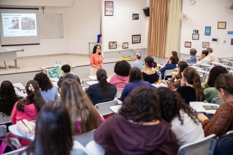 Ele comenta ainda que a professora também destacou a importância de “práticas pedagógicas mais sensíveis à pluralidade cultural e linguística presente nas escolas, valorizando os modos de dizer e de ser das infâncias e propôs alguns caminhos para a construção de uma educação linguística que possa romper com modelos normativos e excludentes, promovendo uma escuta ativa, o acolhimento das diferenças e o protagonismo infantil nos processos de ensino e aprendizagem”.