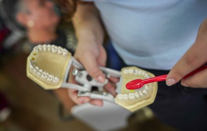 A estudante de odontologia, Gabriela de Abreu Encarnação, orientou as mulheres sobre práticas de autocuidado e adaptou o conhecimento para a realidade das ruas. “Vim ensinar sobre a importância da escovação e a maneira correta de fazer. Trouxe espelho para que elas possam se ver e aprender e, assim, vou ajustando a escovação. Também trouxe um manequim para demonstrar. É minha primeira vez aqui e me sinto muito feliz em poder doar o meu tempo para ajudar outras pessoas. Eu acho muito importante termos a oportunidade de sentir que estamos realmente fazendo a diferença na vida das pessoas, que é o meu maior propósito. É muito bom também para aprendermos a acolher”.