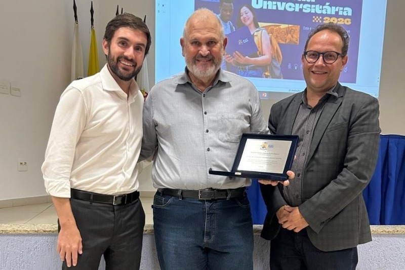 O evento, que contou com a presença do Reitor, Prof. Dr. Victor de Barros Deantoni, foi conduzido pelo decano da EcoN, Prof. Me. Eduardo Frare. Um dos homenageados foi o Prof. Roberto Brito por sua dedicação à frente da Direção da Faculdade de Ciências Econômicas.
