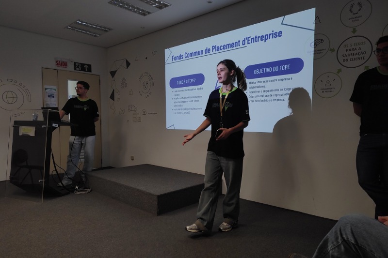 As apresentações aconteceram após os alunos e alunas planejarem e organizarem a execução de atividades de capacitação de educação financeira mediante estudos específicos sobre o mercado acionário, índices, ADRs, FCPEs e análises dos resultados da empresa, que está listada na bolsa de valores Euronext Paris.