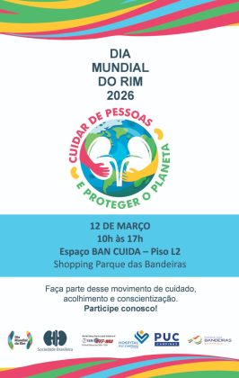 Em alusão ao Dia Mundial do Rim, a Faculdade de Medicina da PUC-Campinas e o Hospital PUC-Campinas, em parceria com a Sociedade Brasileira de Nefrologia (SBN) realizam no dia 12 de março, das 10h às 17h, uma campanha de conscientização e triagem da Doença Renal Crônica (DRC). A ação acontece no Shopping Parque das Bandeiras, em alusão ao Dia Mundial do Rim.