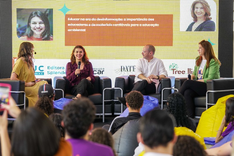 Na sequência, foi realizada uma roda de conversa com o tema “Educar na era da desinformação: a importância dos educadores e de materiais confiáveis para a educação ambiental”, com a o escritor Prof. Dr. Ilan Brenman; a Profa. Dra. Camila Brasil Gonçalves Campos, professora da PUC-Campinas e Editora-Chefe da Splendet; e Isabela Pascoal Becker, diretora de sustentabilidade na Fundação Educar.