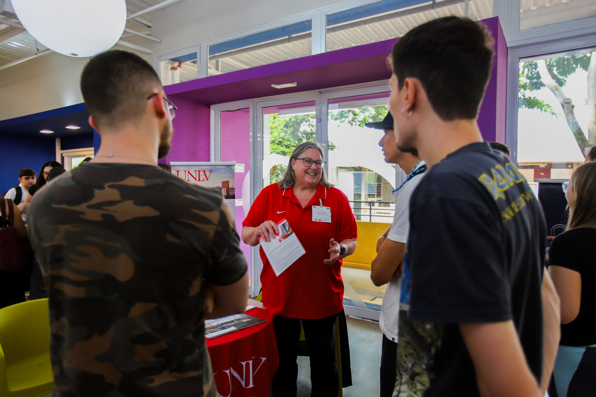 Cheryl continua dizendo que as instituições convidadas vieram ao Brasil com o intuito de recrutar mais estudantes brasileiros. Ela lembra que a, pelo menos, uma década, o Brasil tem estado entre os dez principais países de origem de estudantes que desejam ir aos Estados Unidos e que “existe um laço muito forte entre o país norte-americano e o Brasil quando se trata de intercâmbio internacional e nós estamos aqui porque entendemos a importância dos relacionamentos, em especial os presenciais, e nós somos muito apaixonados pela cultura brasileira, pelo calor humano e pela importância de se criar conexões pessoais. Isso realmente não pode ser feito de modo on-line, virtualmente. Quer dizer, é muito conveniente ter reuniões on-line, mas quando se trata de compartilhar informações sobre tomar uma decisão tão importante e cara como ir para os Estados Unidos, é fundamental criar essa conexão pessoal, então, os representantes das instituições de ensino estiveram aqui para conversar diretamente com os alunos e alunas. Nós realmente queríamos que os potenciais estudantes de intercâmbio tivessem alguém com quem pudessem conversar”.