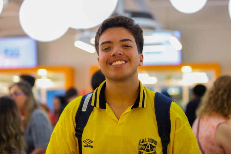 - A aluna do primeiro ano de Relações Internacionais Maria Eduarda Gine explica que ir para os Estados Unidos seria muito bom para melhorar a fluência em inglês.