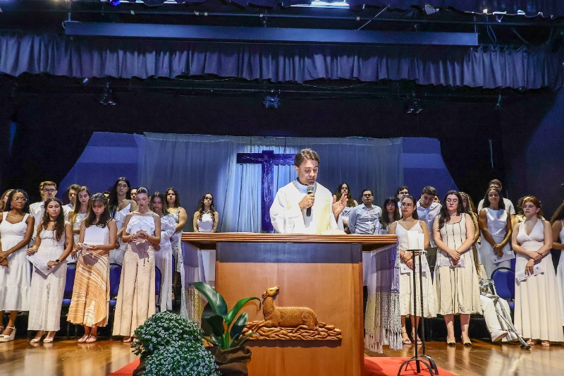 As cerimônias foram presididas pelo Prof. Dr. Pe. Antonio Douglas de Moraes, coordenador da Pastoral Universitária e pároco da Paróquia Universitária Santo Tomás de Aquino, no Auditório do Campus I.