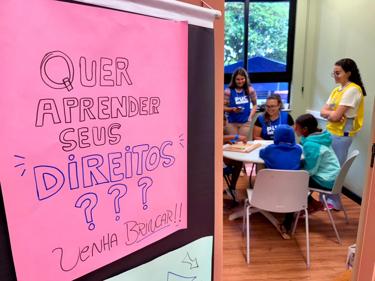 A estudante do Curso de Pedagogia Ana Beatriz Biasotto Simão reforçou a importância do acesso à informação. “É muito interessante trazer as crianças para cá, pois muitas não têm a oportunidade de acessar universidades, e a PUC-Campinas é um espaço grande que pode lhes proporcionar cultura. Além disso, estamos trabalhando o ECA, um direito ao qual muitas delas não têm acesso. Nosso objetivo é que elas entendam que possuem direitos garantidos por lei. Para fazer isso de forma dinâmica, estamos usando o teatro e a mímica: um time tira um papel com um direito e precisa encená-lo para o outro time adivinhar qual é”, explicou.