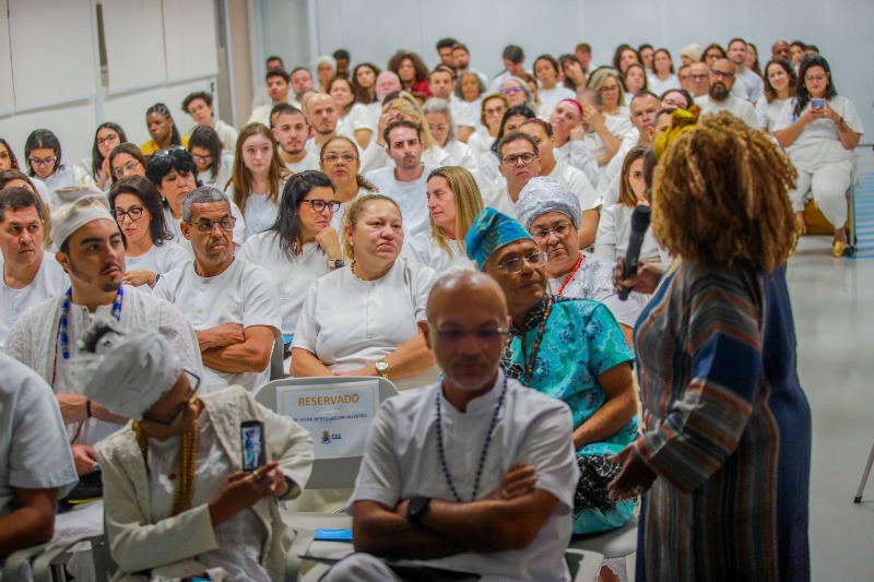 “Pra mim a maior importância é, em primeiro lugar, reunir as pessoas das comunidades tradicionais de matriz africana. Dentro desse espaço, um espaço do conhecimento, apresentar esse documento, muito forte, de uma representatividade ímpar, porque a estamos falando de natureza e de um espaço comum. O lugar é meu, ele é seu, ele é de todos. E hoje falamos sobre como tratamos esse lugar: a água, a mata, o mar e como eu vejo esse lugar, que é o meu lugar, mas é o lugar das crianças, do idoso e de tudo. Foi um momento magnífico”, comentou a comendadora Edna Almeida Lourenço.