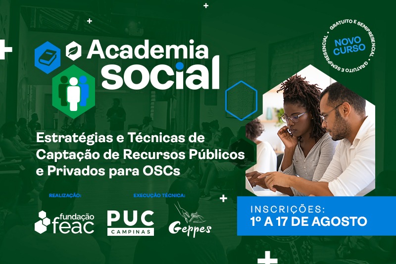 Implementação da Academia Social — PUC-Campinas + FEAC. É uma ação realizada em parceria com a Fundação FEAC, é uma plataforma de formação cidadã, voltada a fortalecer competências para a atuação social, o empreendedorismo e o desenvolvimento humano. Seu desafio atual é ampliar sua implementação e consolidar metodologias que articulem ensino, pesquisa e extensão, potencializando o impacto das ações no fortalecimento da sociedade civil e na promoção da inclusão e da cidadania.
