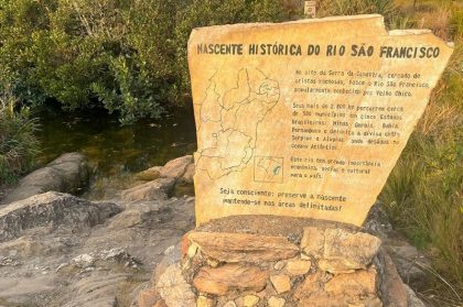 A nascente histórica do Rio São Francisco, por onde os pesquisadores passaram, está localizada no alto do Parque Nacional da Serra da Canastra, no município de São Roque de Minas (MG).