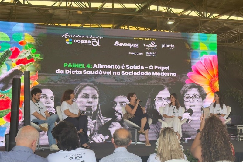 Ao lado de Maria Angela, também fizeram parte da mesa-redonda o psiquiatra e gerente de Recursos Humanos, Kleber Francisco de Souza; a gerente do Departamento de Alimentação Escolar da CEASA Campinas, Julia Amorim; a gerente do Banco de Alimentos de Campinas, Bruna Angelis; e a nutricionista e pós-doutora em Ciência dos Alimentos pela Universidade Estadual de Campinas (Unicamp), Renata Soriano.