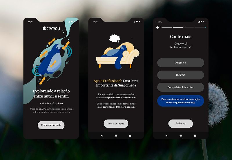 O segundo finalista é o projeto Compy, desenvolvido por Hugo Ribeiro Ferreira Leal, Lia Martins Schenk, Thiago Balester de Mello e Silva, Raphael de Giannandrea e Júlia Maeda Rovariz durante o Projeto Integrador: Design de Interfaces, sob orientação do professor Tomas Sniker. O aplicativo tem como foco oferecer suporte a pessoas com Transtornos Alimentares, promovendo autoconhecimento, acompanhamento terapêutico e acesso ampliado a recursos de saúde emocional.