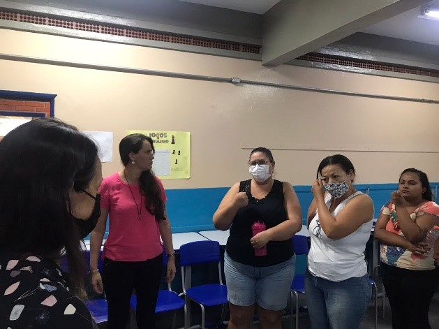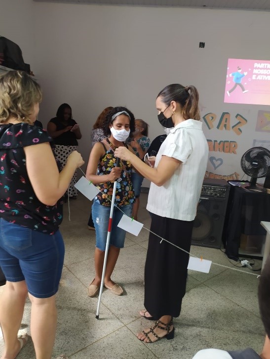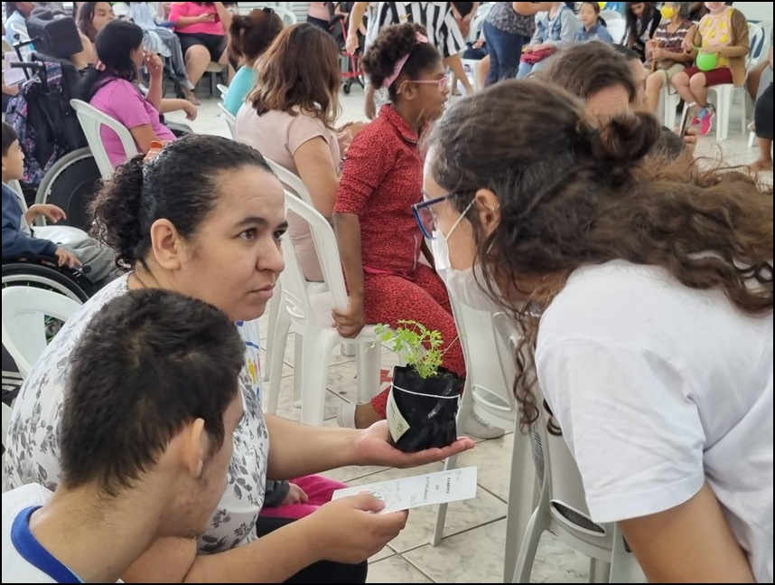 Roda de Conversa “Narrativas e Memórias sobre o Cuidado” – desenvolvida no CRAS Amanda – Hortolândia, com mães e cuidadores de pessoas com deficiência, com a participação das voluntárias Gabriela Bueno (Projeto Girassóis) e Adriele (Projeto ARTiculadas)