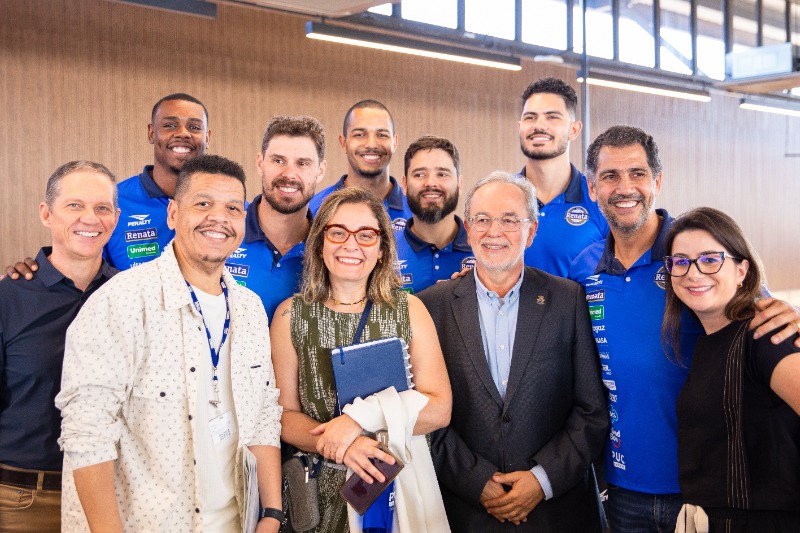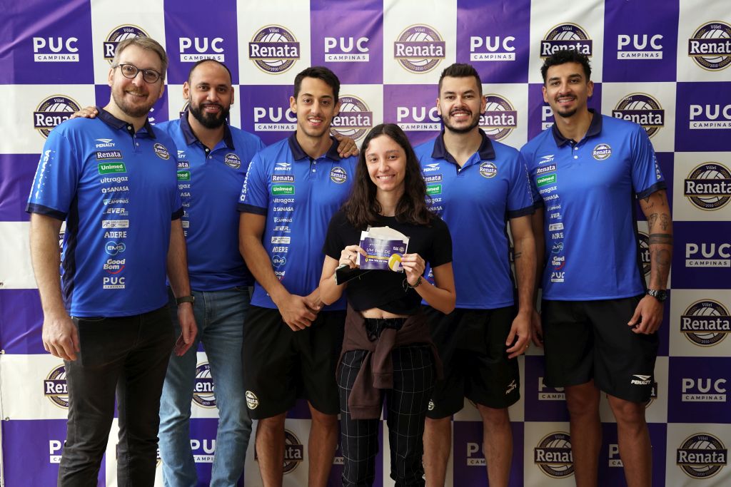 O reitor da Universidade, Prof. Dr. Germano Rigacci Júnior, recebeu os atletas e anunciou oficialmente o apoio. “Eu quero, com muita alegria, anunciar a todos que a PUC-Campinas fez uma parceria com a equipe do Vôlei Renata, por algumas razões. A primeira, a excelência esportiva: uma equipe que nos últimos anos tem conquistado campeonatos estaduais, nacionais e tem revelado atletas para o mundo todo. É um exemplo para todos os nossos estudantes. E o segundo é o compromisso que a equipe do Vôlei Renata tem com a luta contra a desigualdade social. Cerca de dois mil jovens já foram atendidos pelo trabalho da equipe, seja pela promoção da formação esportiva, seja atuando com doação de cestas de alimentos. A PUC-Campinas se liga ao Vôlei Renata por essas duas grandes ações, a esportiva e a social”, afirmou o reitor, que também reforçou que o time também participa, junto da Universidade, do Programa Antirracista pela Cor do Esporte, lançado há uma semana.