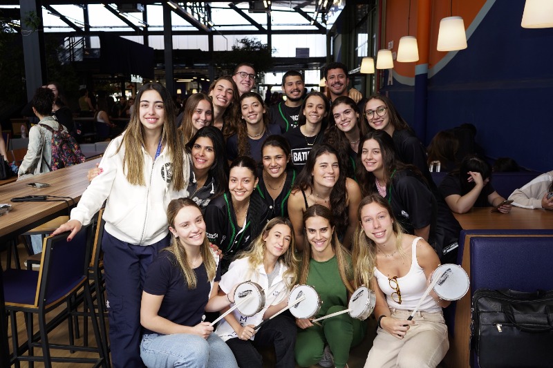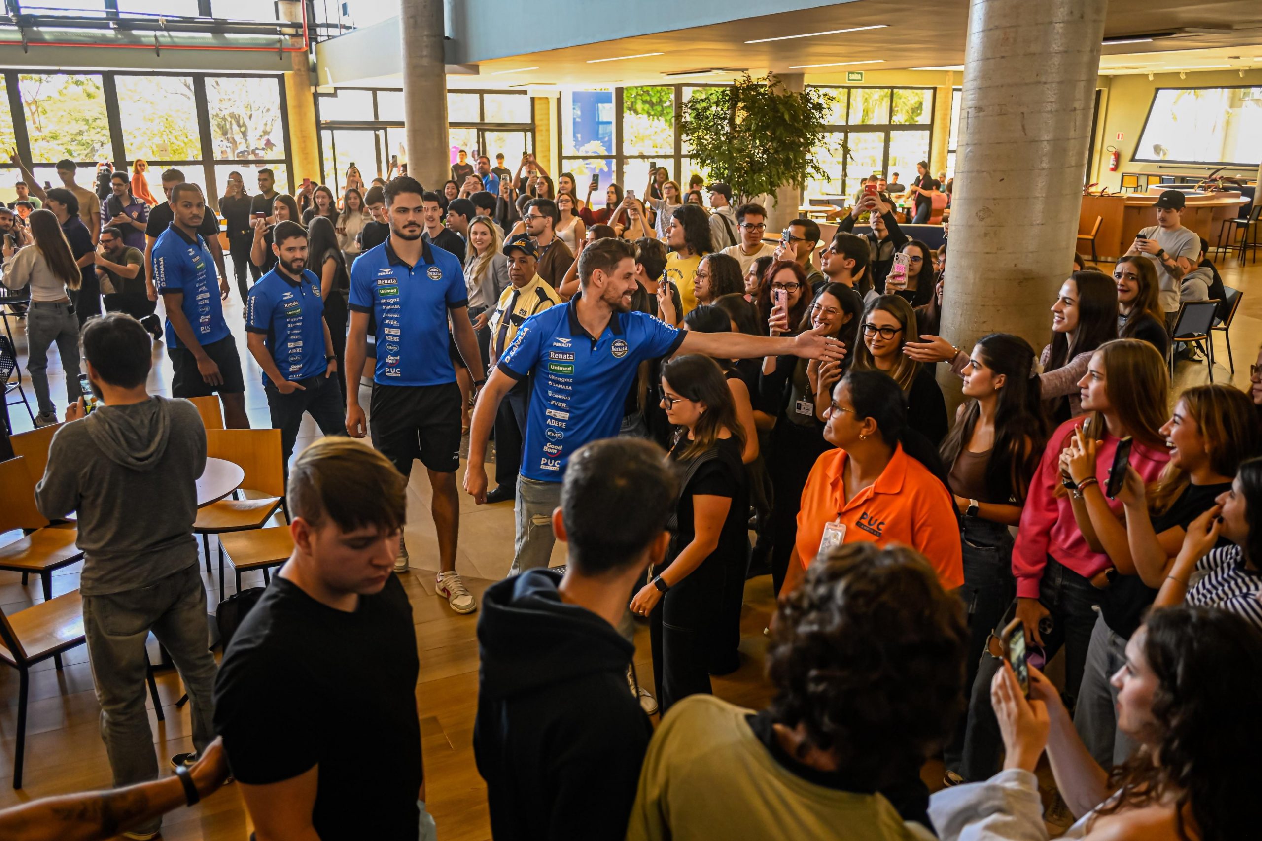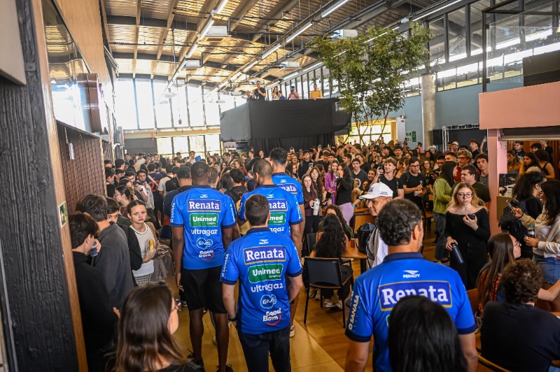 Logo depois da bateria, entrou o time do Vôlei Renata, todo uniformizado, desfilando pela praça. Os integrantes se dividiram nos dois Campi. No Campus I estiveram o bicampeão olímpico e embaixador do time, Maurício Lima, o campeão olímpico e capitão da Seleção Brasileira, Bruninho, e os atletas Witalo, Acerola, Lukinha e Puron. No Campus II marcaram presença o campeão olímpico e embaixador André Heller e os atletas: Cris, Bruno Lima, Renan e Maurício Borges, também campeão olímpico. Eles foram aplaudidos pelos alunos e alunas, que transformaram as praças de alimentação em um verdadeiro ginásio lotado.