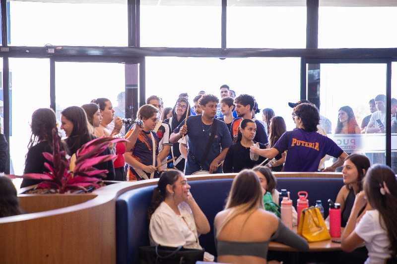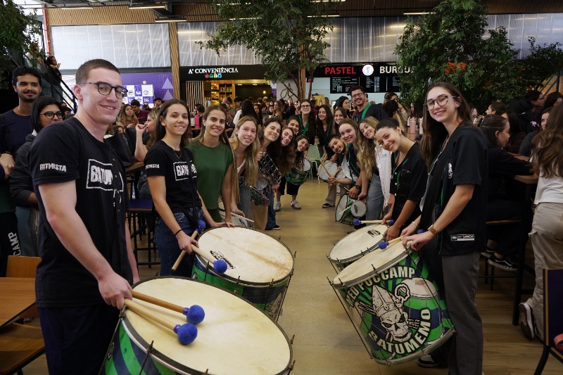 A apresentação foi surpresa, na hora do intervalo da manhã, com ambas as praças de alimentação lotadas. Toda estrutura de lançamento foi montada, deixando os alunos curiosos ao chegarem no espaço. As baterias da Faculdade de Medicina e Fisioterapia abriram a festa no Campus II. No Campus I, a bateria da LAP (Liga das Atléticas da PUC-Campinas) foi a responsável por animar o público.