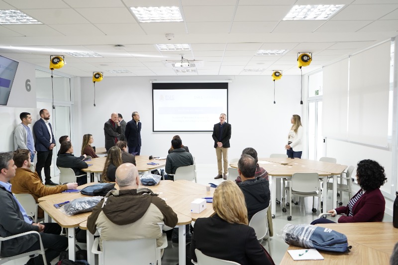 Depois das apresentações, a primeira aula contou com um tour pelo Hub de Inovação da PUC-Campinas, com os laboratórios de Cibersegurança e o AIoT Lab.