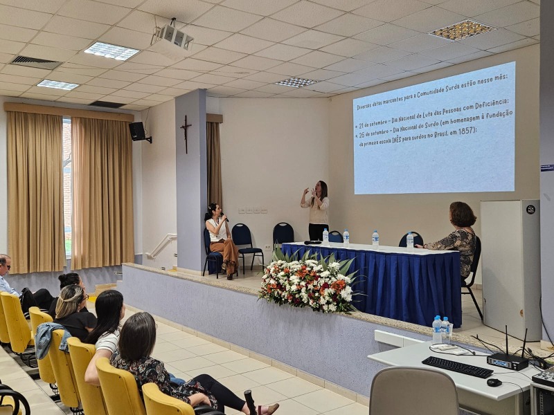A Faculdade de Letras da PUC-Campinas realizou, na última segunda-feira (22), o evento “Setembro Surdo: Mês da Visibilidade Surda na PUC-Campinas “. Organizado pela Faculdade de Letras, o encontro teve como objetivo ampliar o debate sobre a inclusão da comunidade surda, destacando temas como direitos, cultura, bilinguismo e representatividade no mercado de trabalho.