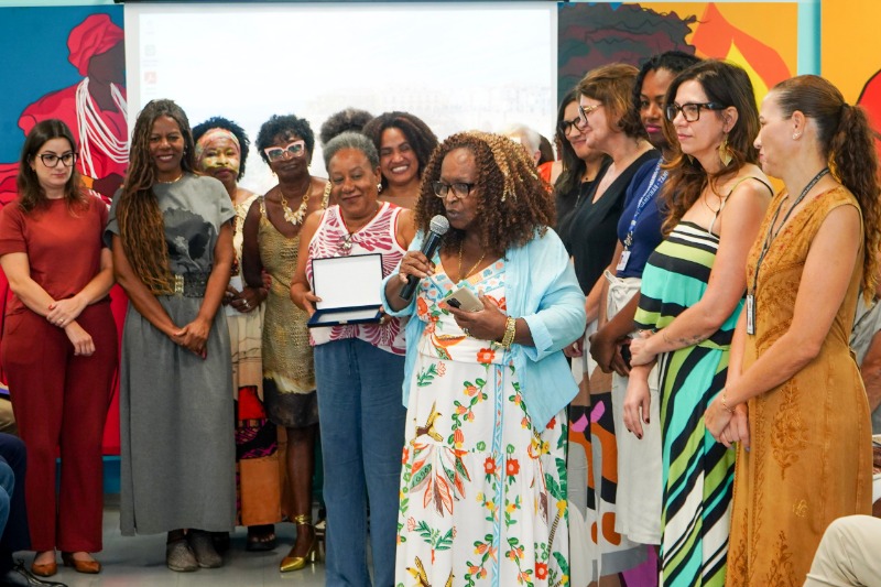 Ao final do evento, o Reitor Prof. Dr. Germano Rigacci Júnior recebeu uma placa comemorativa entregue pelas mulheres presentes na cerimônia, em um gesto simbólico de reconhecimento pelo apoio e incentivo às ações antirracistas e à promoção da diversidade no ambiente universitário.