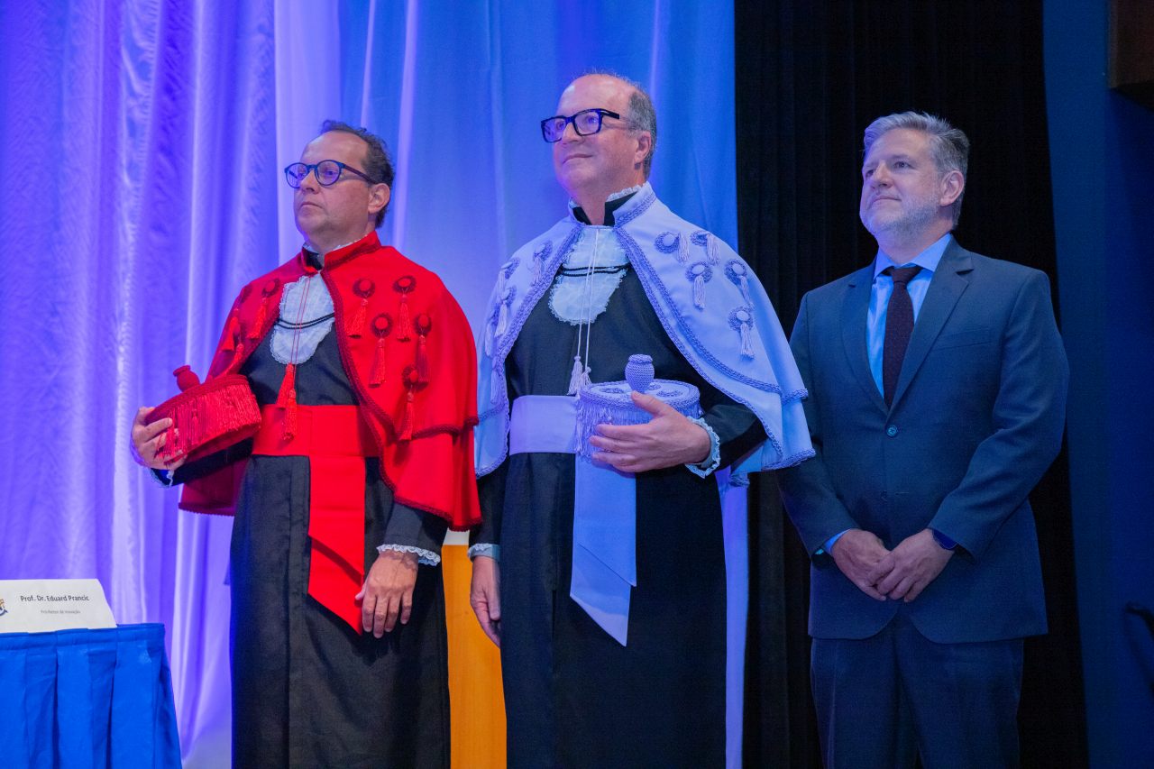 “Esse legado é um trabalho de toda a comunidade universitária: do corpo docente, do corpo técnico-administrativo, dos gestores que acreditaram nos projetos que foram sendo construídos aqui dentro e que foram sendo implementados no dia a dia desta instituição. Agora, a Universidade está em um patamar que ela deve avançar ainda mais”, destacou o Prof. Dr. Germano Rigacci Junior.