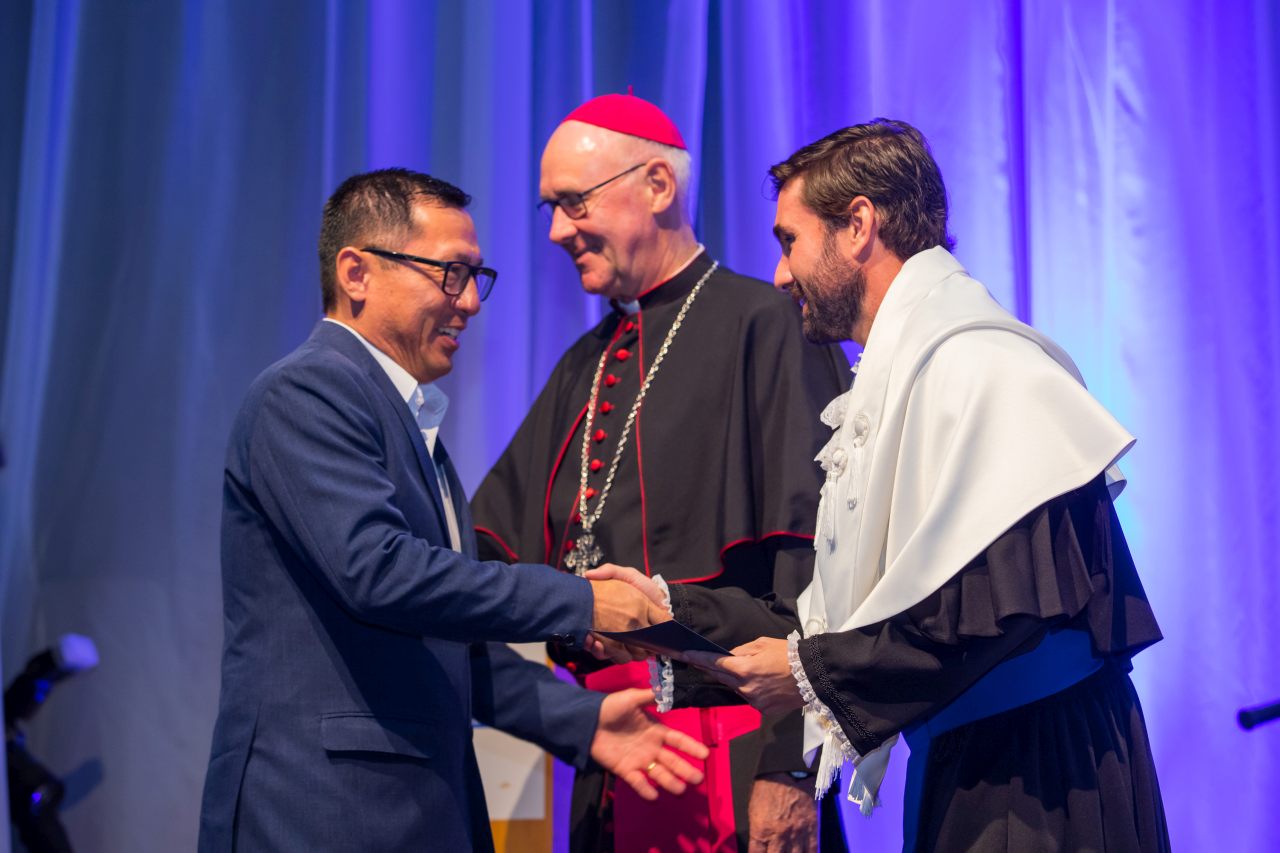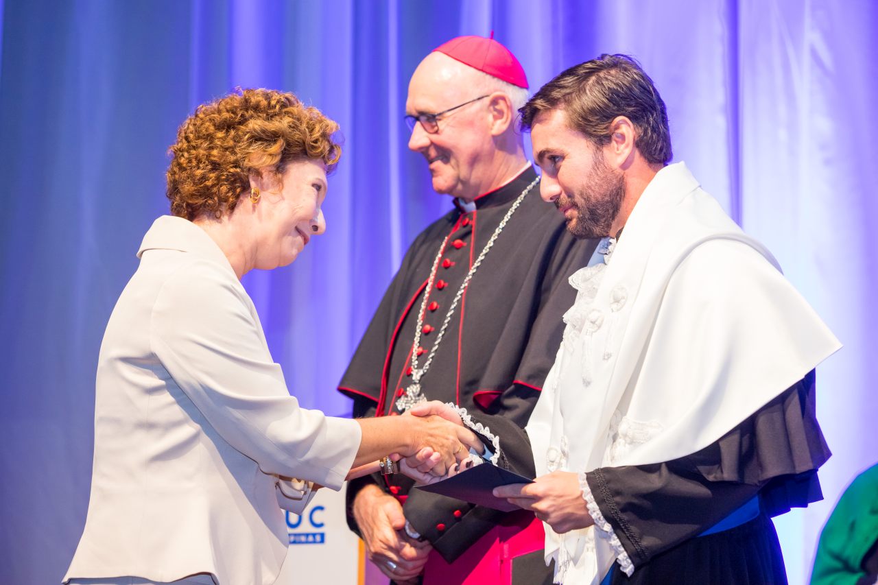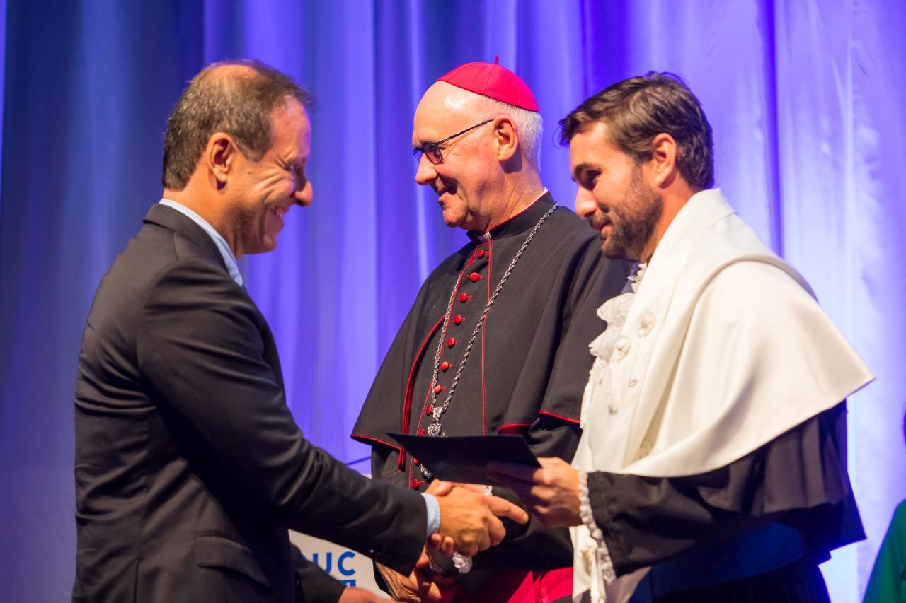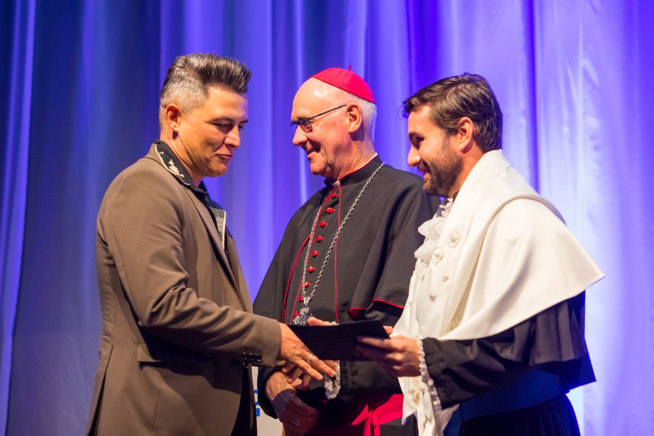 A solenidade de posse do novo Reitor também foi marcada por um momento de homenagem aos ex-reitores da Universidade. Os Ex-Reitores Prof. Dr. Eduardo José Pereira Coelho, Prof. Gilberto Luiz Moraes Selber, Prof. Dr. Pe. José Benedito de Almeida David, e Profa. Dra. Angela de Mendonça Engelbrecht receberam do Arcebispo Metropolitano um pergaminho de agradecimento pelos anos de contribuição à instituição.