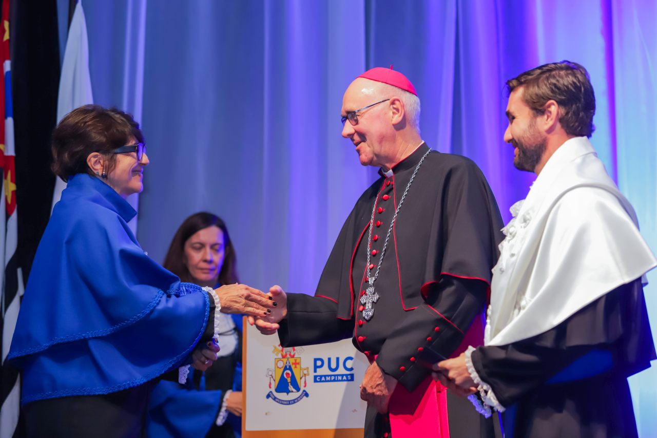 À nova gestão, o Arcebispo Metropolitano de Campinas, pediu que todos mantenham a verdade como princípio orientador da instituição, assegurando a centralidade da pessoa humana nas decisões acadêmicas e administrativas. “Desejo que a PUC-Campinas, fiel à sua identidade católica, seja sempre espaço onde se constrói sabedoria, se acolhe a diversidade de culturas e se promove o bem comum com coragem intelectual, criatividade pastoral e profundo amor ao próximo, sempre brilhando pela fé e pela ciência. Contem com minha prece, bênção e proximidade. Sejam corajosos, dedicados e valentes e uma abençoada missão”, afirmou Dom João.